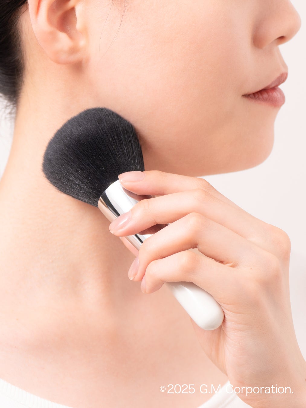 メイクブラシとしてはもちろん、フェイスラインや首~鎖骨を撫でるように使用することで、すっきりとした印象に導きます。