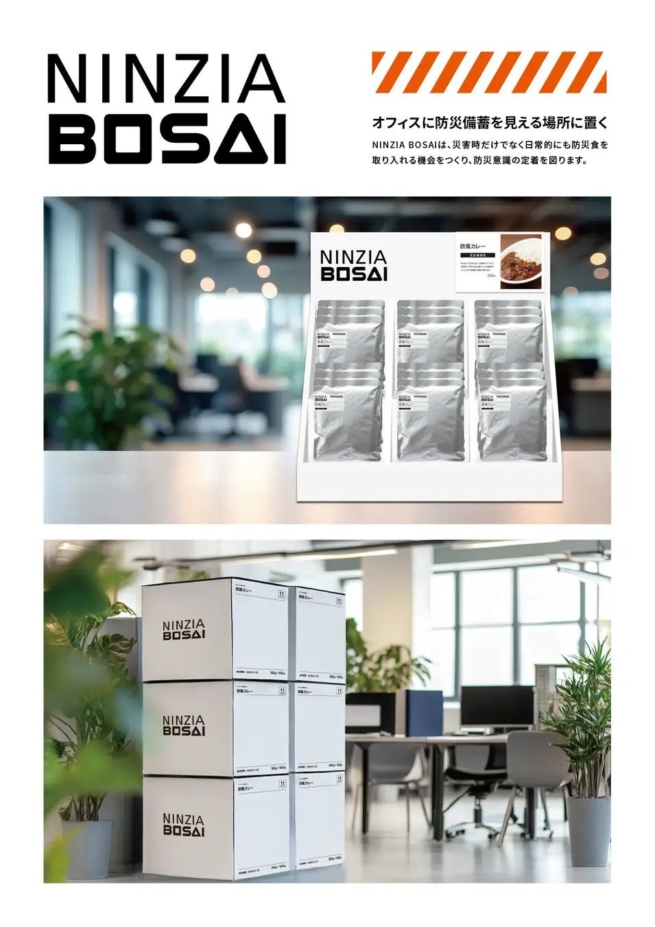 こうした現状を受け、NINZIA「見せる・味わう・植物性」をテーマに、持続可能な備蓄システム 『NINZIA BOSAI』を立ち上げました。災害時のみならず、普段の食事にも取り入れられる「フェーズフリー食品」をラインナップ。動物性油脂を使わず、完全植物性にすることで常温でも脂が固まらず、防災に求められる機能と満足感ある味わいの両立を実現しました。『見せる防災食』としてオフィスに設置することで、日常的には社食・学食として活用でき、自然なローリングストックを促進。加えて、全社員が備蓄場所を把握できる体制を構築することで、災害時にも迅速な対応を可能にし、備蓄不足によるリスクの最小化を目指します。
