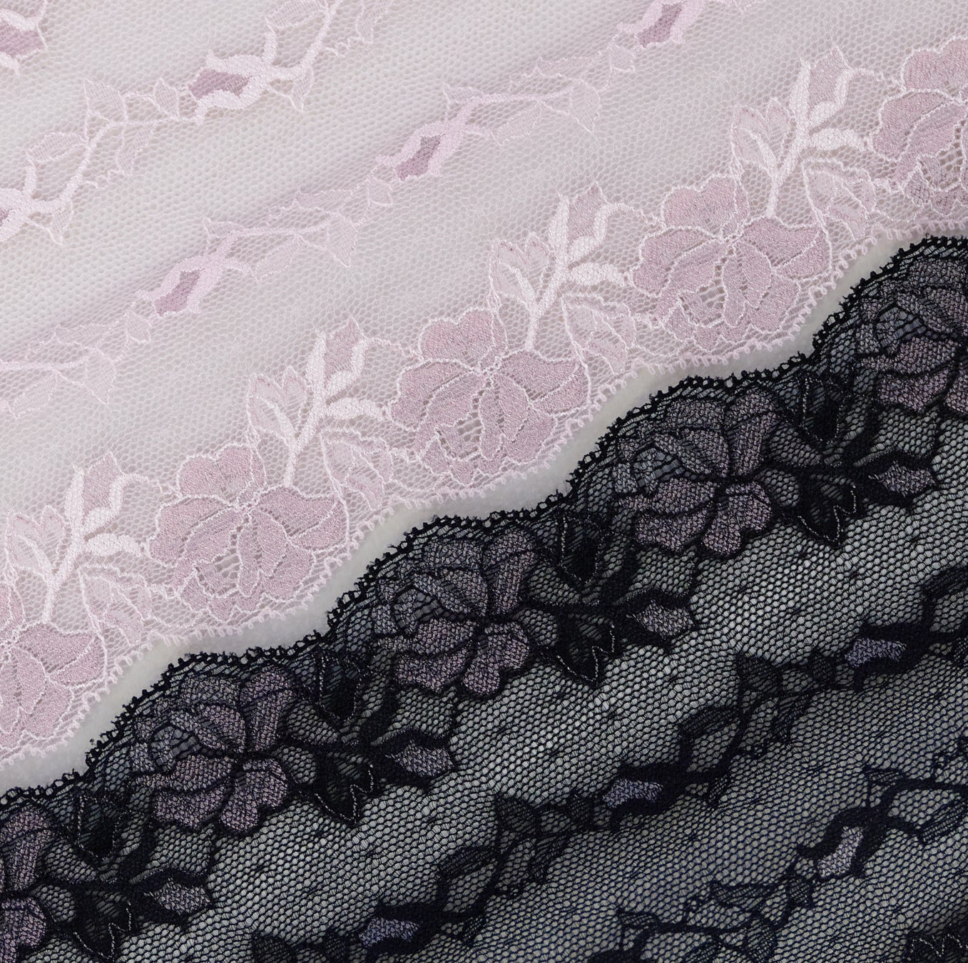 ブラサイドには、ROSIERオリジナル柄のローズとつぼみが流れるように広がるストレッチレースを使用。