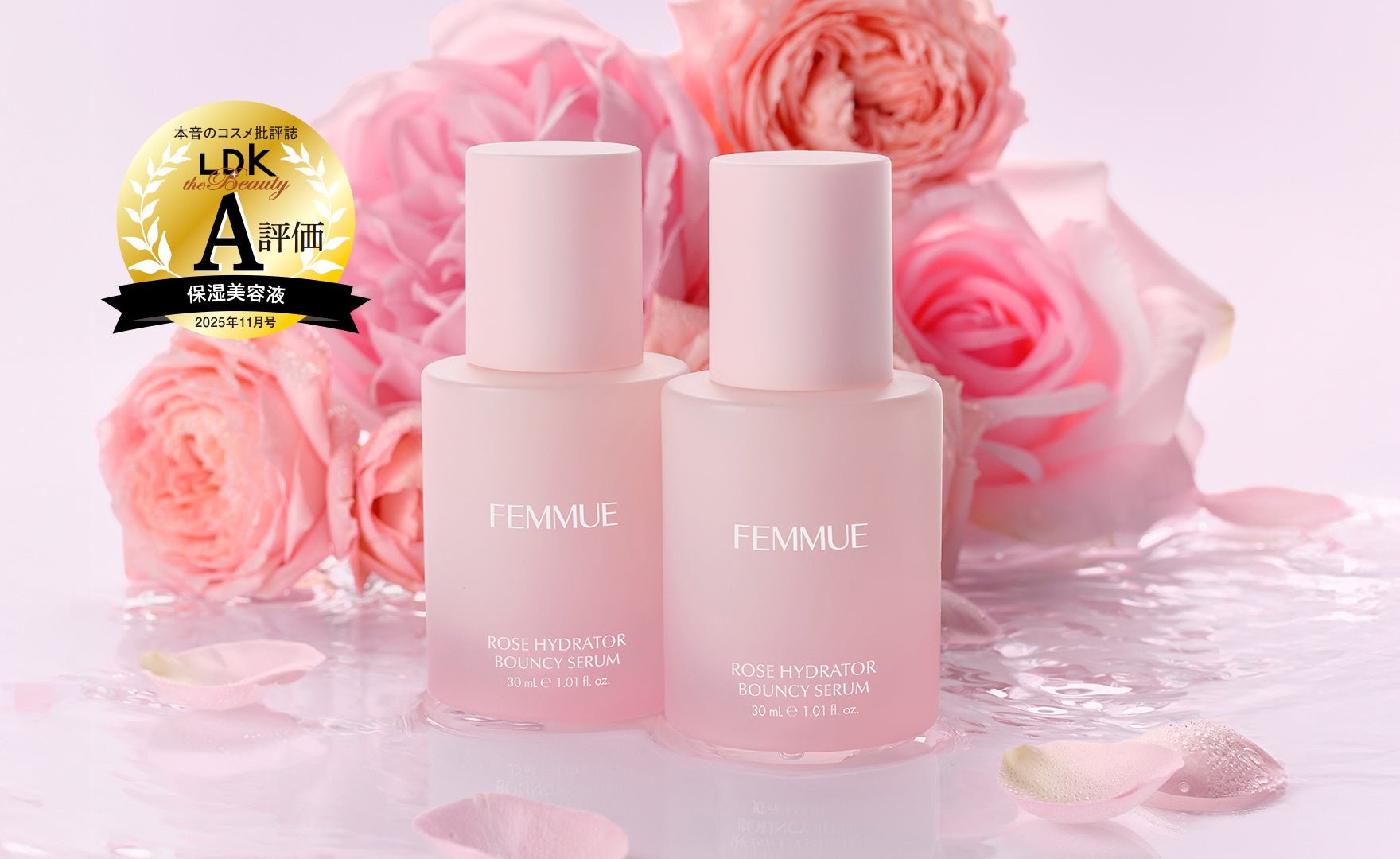 花たちが持つエッセンスでINNER&OUTER BEAUTYを実現するMODERN BOTANICAL™スキンケアブランドFEMMUE〈ファミュ〉の水分のちからで肌を目覚めさせる、プランピング美容液「ローズ バウンシーセラム」が、本音でコスメを評価する雑誌『LDK the Beauty』(株式会社晋遊舎)2025年11月号において、保湿美容液部門のA評価を受賞いたしました。