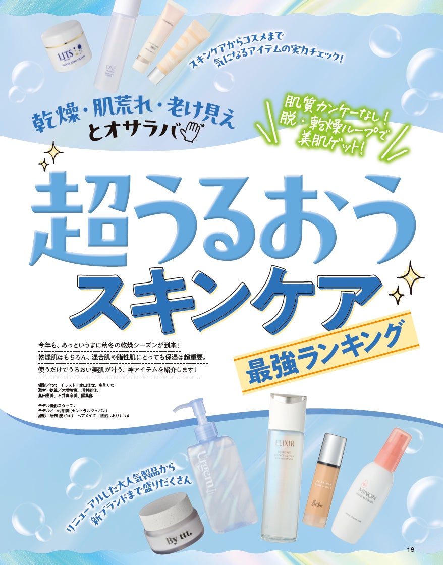 12月号は「超うるおうスキンケア最強ランキング」を総力特集! 乾燥・肌荒れ・老け見えとオサラバ! 冬到来前に、今買うべき美肌アイテムを一挙公開します。他にも、テクテスで厚塗り感なくカバーが叶う絶対買いな新作ファンデを検証。また、万能ベージュチークや、サロン級ヘアをつくる瞬間美髪アイテムなど、今知りたい美容情報をたっぷりとご紹介します。