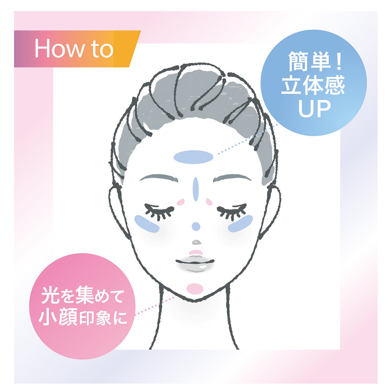 頬、鼻筋などになじませ、立体感・素肌の透明感をプラスします。きめ細かなメッシュフィルターを通ることにより、均一にムラなく密着。