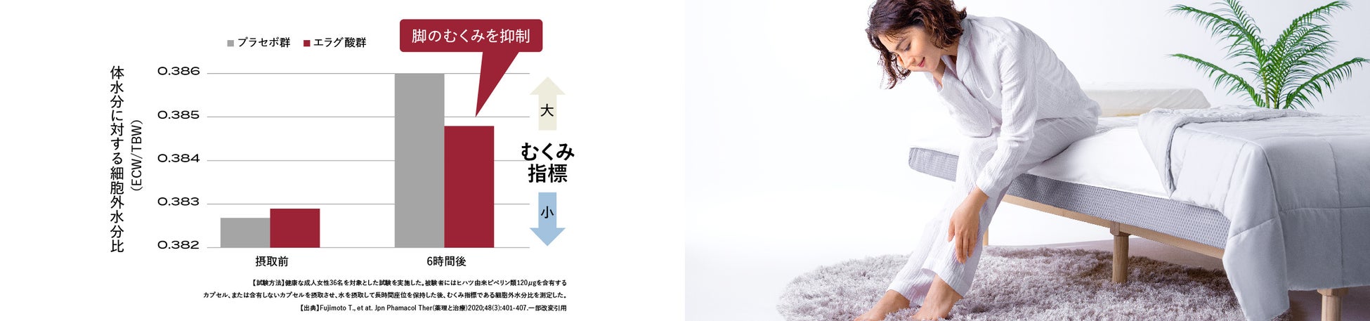 血管収縮が緩和し血液循環が促進されると、冷えだけでなくむくみの改善にも繋がります。実際にヒハツ由来ピペリン類を用いた検証では、摂取から6時間後に脚のむくみが抑制されることが確認されました。