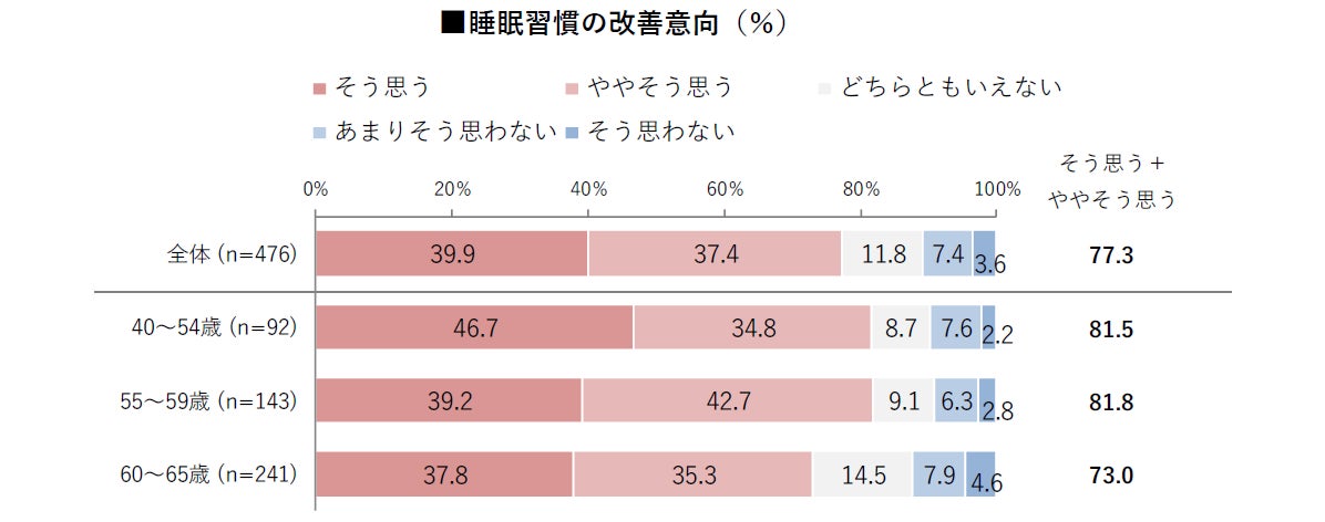 睡眠習慣・運動習慣を改善したい割合はともに7割以上。