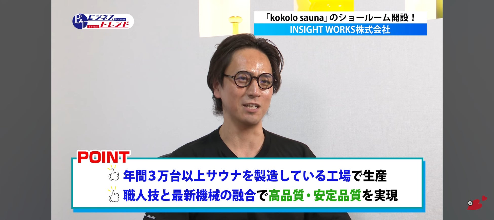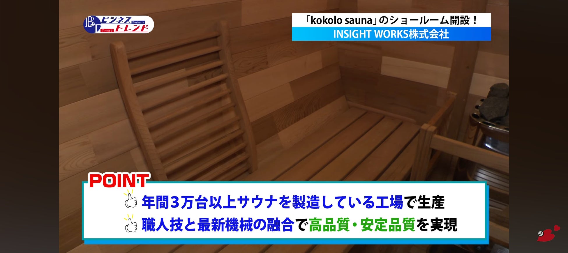 10月16日放送の千葉テレビのビジネス情報番組「ビジネストレンド」にて、「kokolo sauna®」を運営するINSIGHT WORKS株式会社が特集されました。