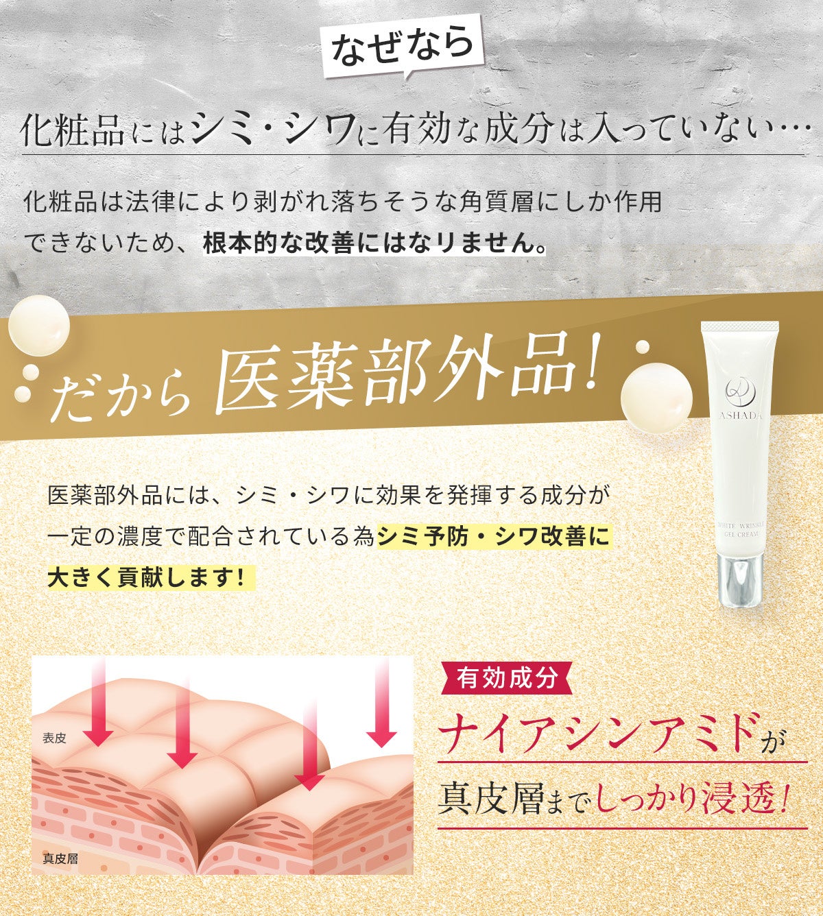 シミ・シワにアプローチするW薬用成分配合のシミシワホワイトクリーム