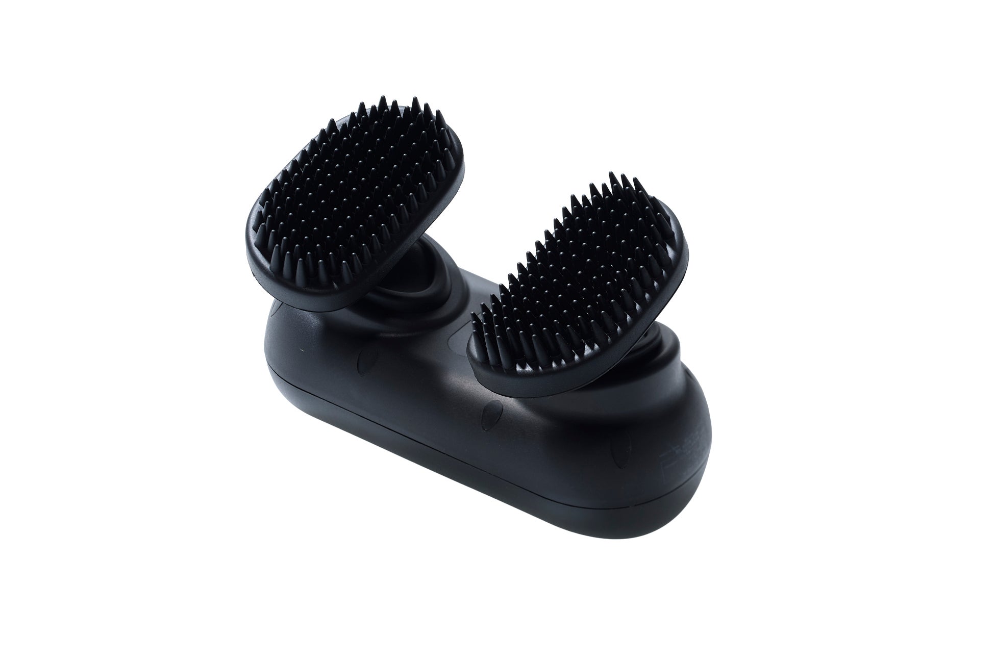 大きな2つのブラシで、男性の頭皮や肩をしっかり揉み上げます。
