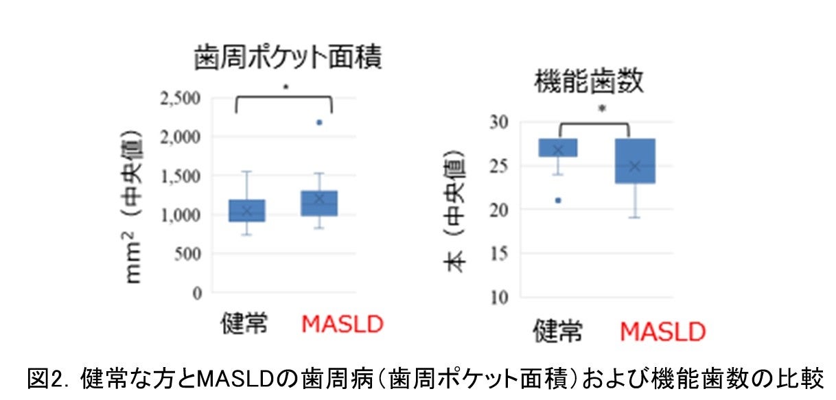 MASLDの方は、お口の清潔さが保たれておらず、歯周病に加えて、お口の問題によるQOLに影響が生じる兆しがあることから、口腔ケアが重要な視点となる可能性があります。今後は、医科と歯科が連携し、「からだ」と「口」の両面から支える新しい医療・保健の形が期待されます。