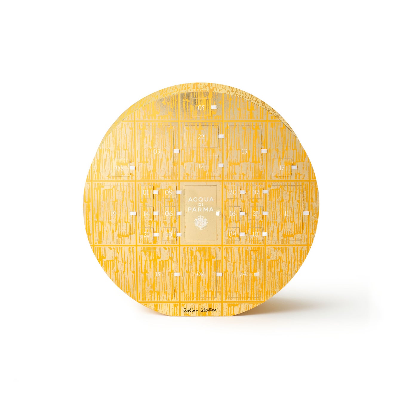 待ち遠しい季節を祝うこのアドベントカレンダーのゴールドの扉ひとつひとつに、コロニア、ブルー メディテラネオ、シグネチャーズ オブ ザ サン、ホームコレクションといったメゾンを象徴するアイテムを忍ばせています。プレイフルでありながらエレガントな円筒型のハットボックスデザインが、アクア ディ パルマらしい光あふれるホリデームードを体現します。