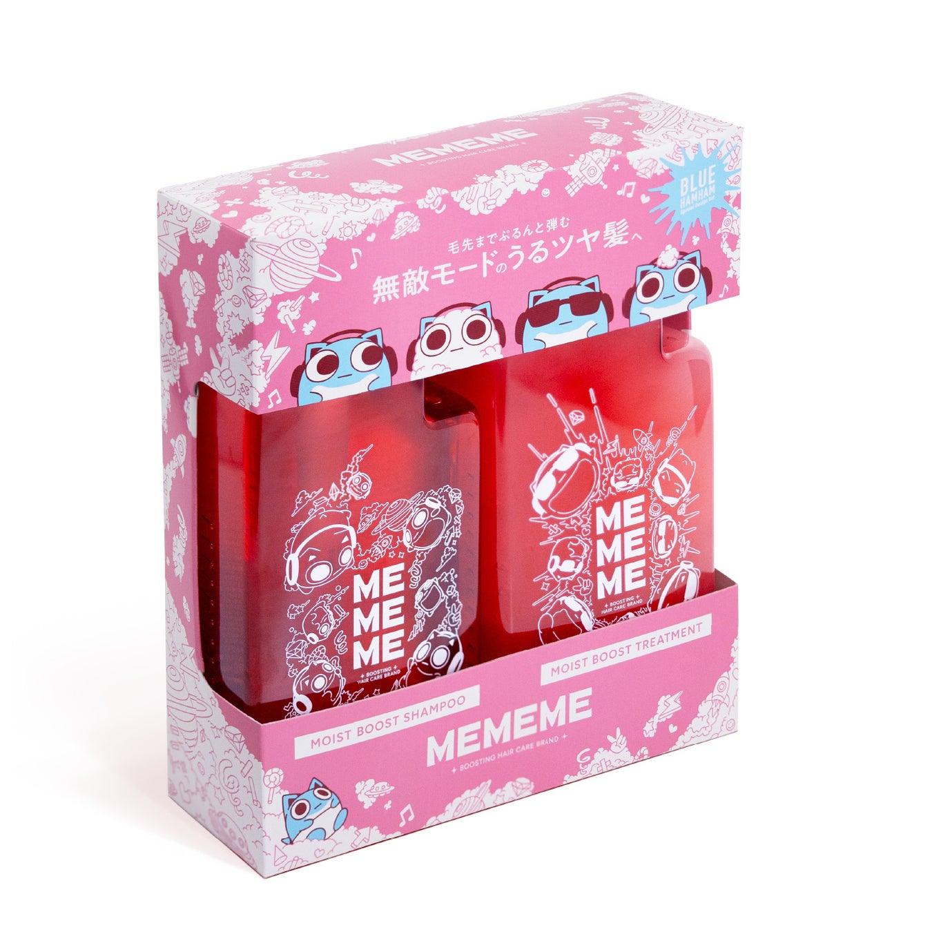 「MEMEME」は、「PLAY! ME<毎日過去最高のわたしを楽しもう>」をブランドコンセプトに、自分の「好き」を大切に、髪も気分も弾むブーストケア体験を提案するヘアケアブランドです。今回のコラボレーションでは、その世界観に「ブルーハムハム」の自由で遊び心あふれるキャラクター性を掛け合わせることで、手に取るたびに気分が弾むようなデザインに仕上げています。