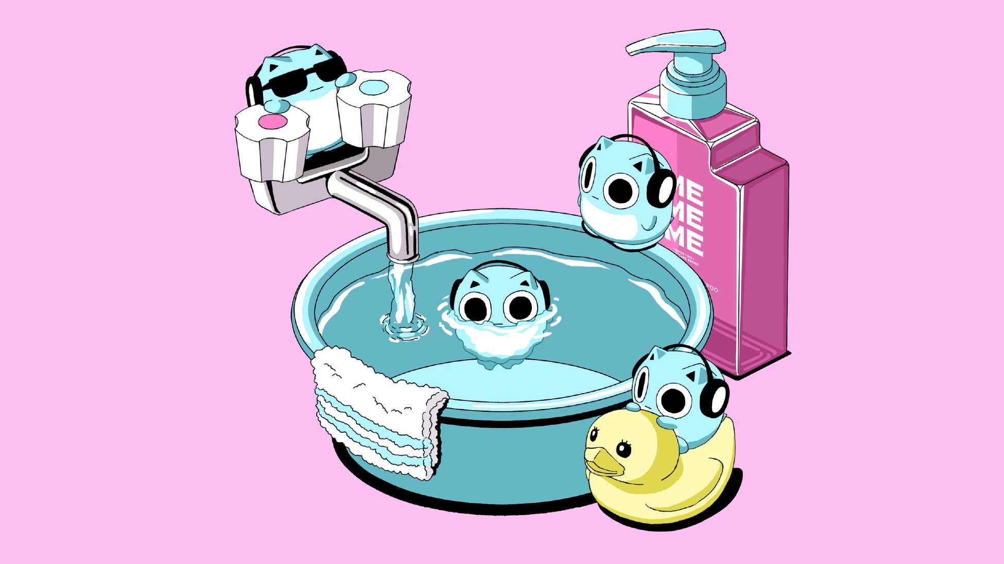 限定デザインボトルの発売に合わせて、「ブルーハムハム × MEMEME」のコラボ動画を公開します。「ブルーハムハム」たちがお風呂でわちゃわちゃと動き回る様子を描き、遊び心をくすぐる映像となっています。動画は、「ブルーハムハム」公式SNSアカウントおよびMEMEME公式SNSアカウントにてご覧いただけます。