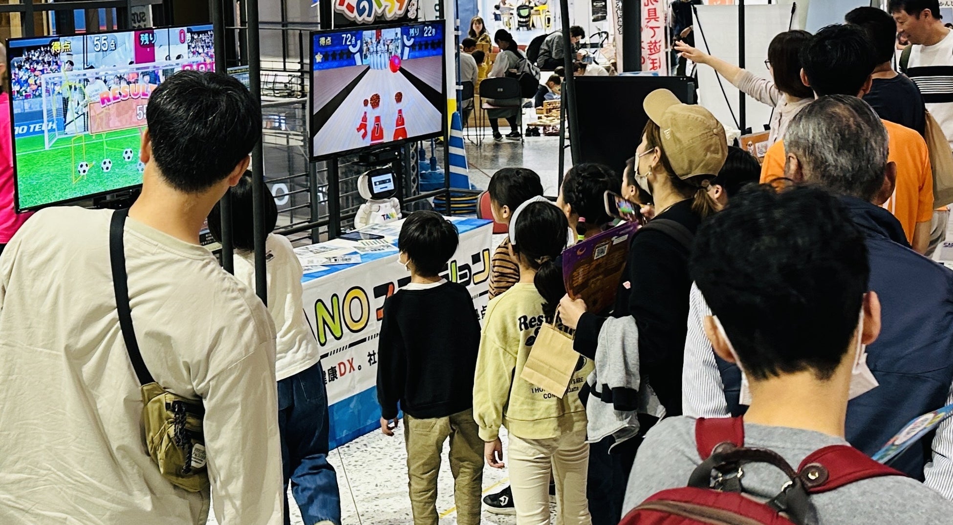 出展ブースでは、発達支援やリハビリ分野で注目を集めるTANOTECH開発の「TANO」を使用。非装着・非接触で体の動きをセンサーが読み取り、全身を使って楽しくプレイできる体験を通して、身体能力や集中力、バランス感覚を育むことを目指しています。