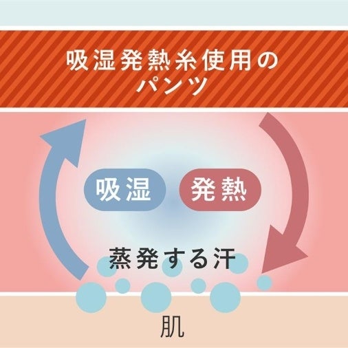 肌から放散される水分を吸水し、発生する吸着熱を閉じ込めて保温します。