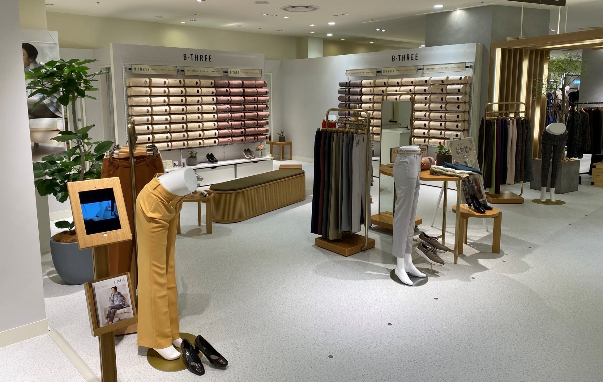 ビースリーはパンツに特化した専門メーカーです。年齢や体型に関係なく着用される、普遍的で機能的な“パンツ”というアイテムと、皮膚感覚で伸び縮みする究極の“360°ストレッチ生地”を掛け合わせ、全ての女性にぴったり似合う、心地よく美しい理想のパンツづくりを追求しています。
