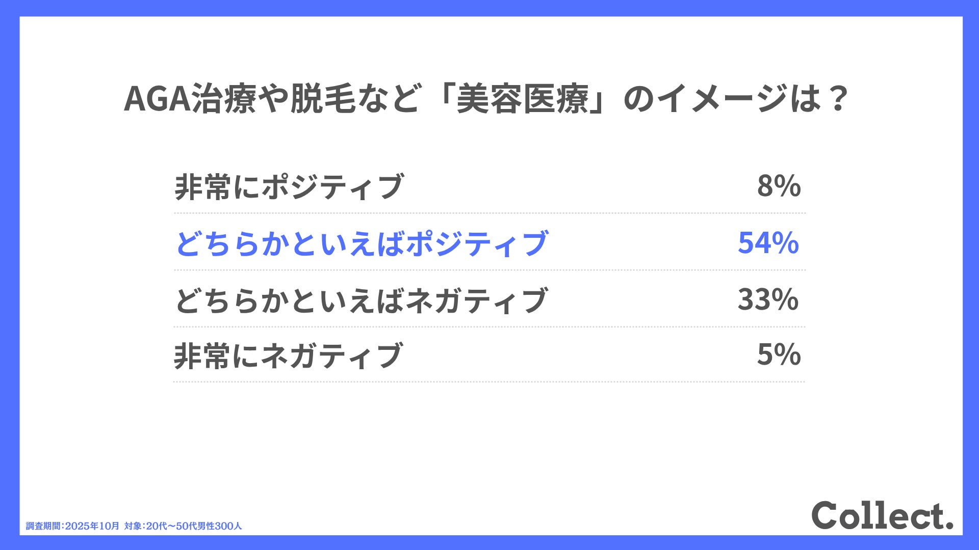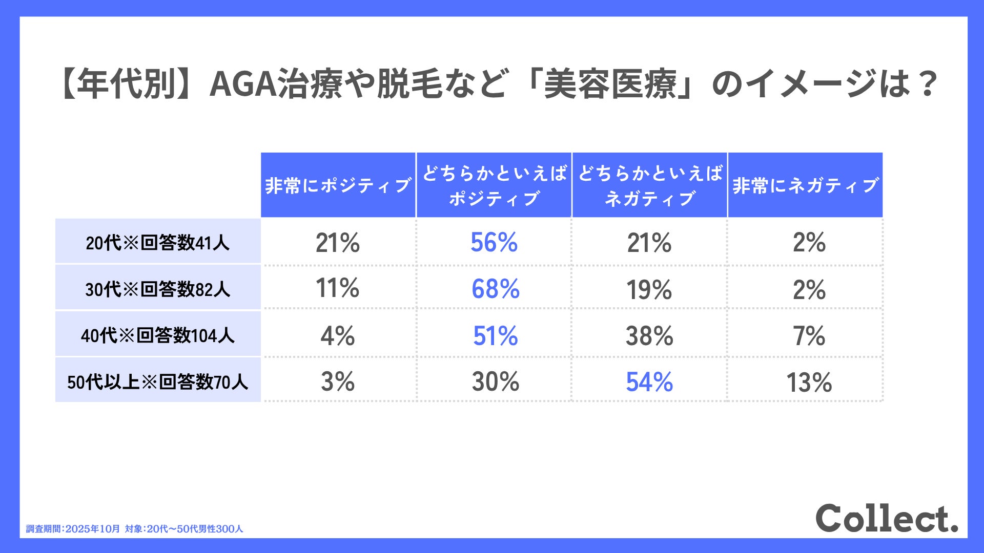 こうした背景を踏まえ、Collect.(コレクト)では、10代〜50代の男性を対象に、美容医療に対するイメージや年代・年収による意識の違いを明らかにするためのアンケートを実施しました。