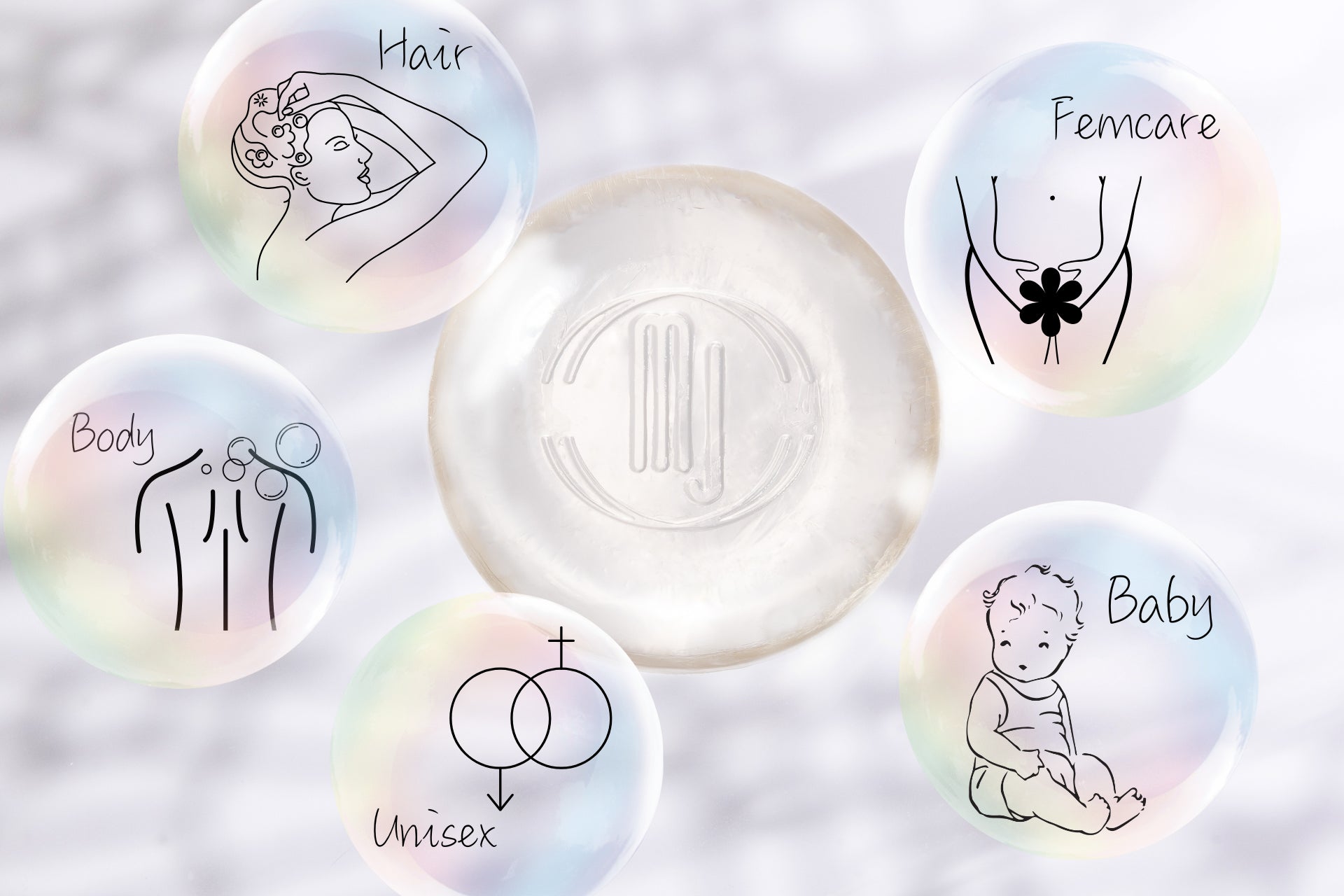 髪・顔・体・デリケートゾーンまで。赤ちゃんも使える”オールインワンソープ”【髪のクリーニング弱酸性シャンプーバー】は髪だけでなく、顔・体、さらにはデリケートゾーンのケア(フェムケア)にもお使いいただけるオールインワン仕様です。肌への優しさを追求し、赤ちゃんにもご使用いただける処方となっています。これ1つあれば、家族みんなの全身をケアでき、浴室はいつもスッキリ。