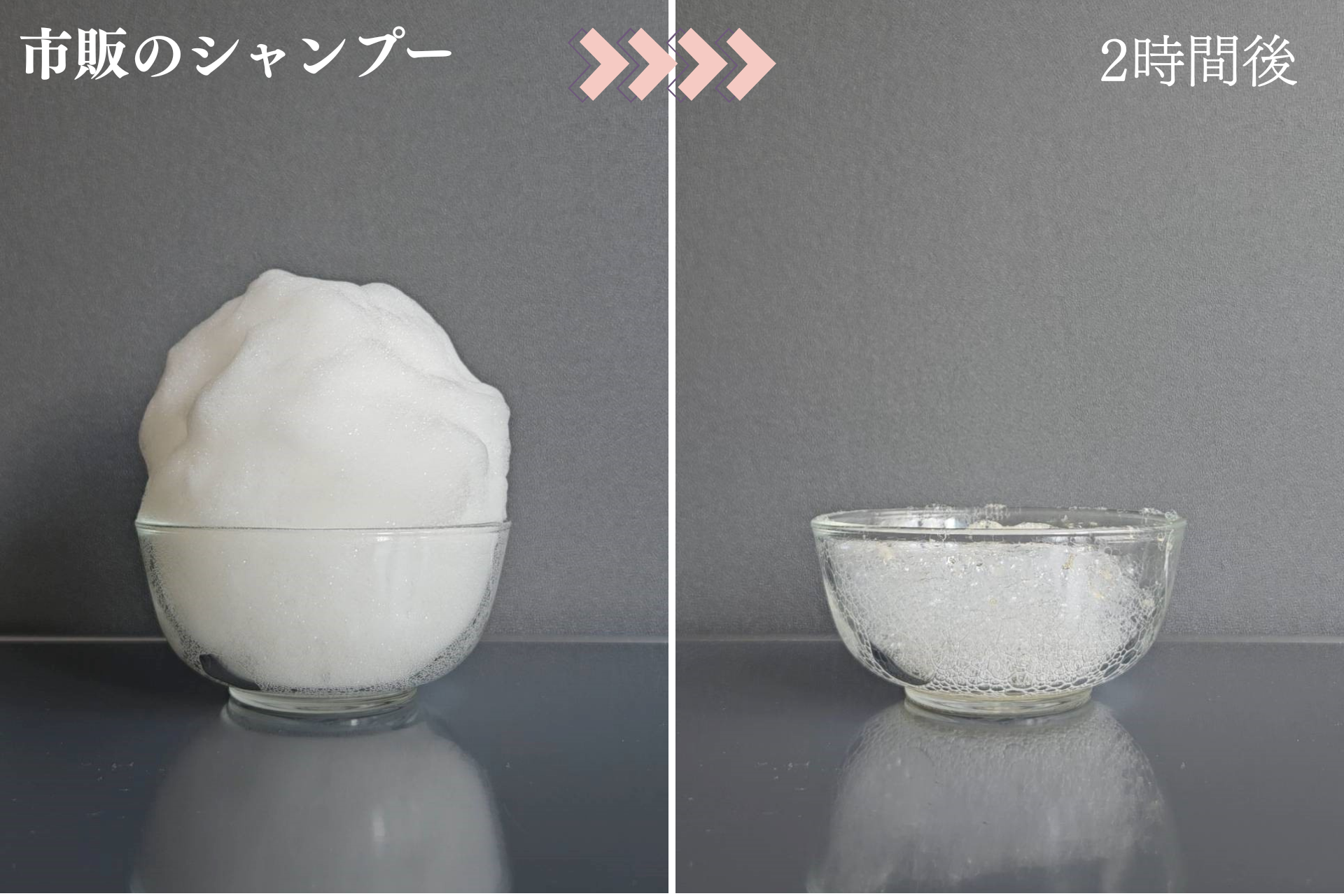 実はサロン使用の6,000円の高級シャンプーです。ですが配合成分の約70%は水+たくさんの植物・油性成分配合です。キメも荒く時間経過とともに泡が消えて油性分が残ります。