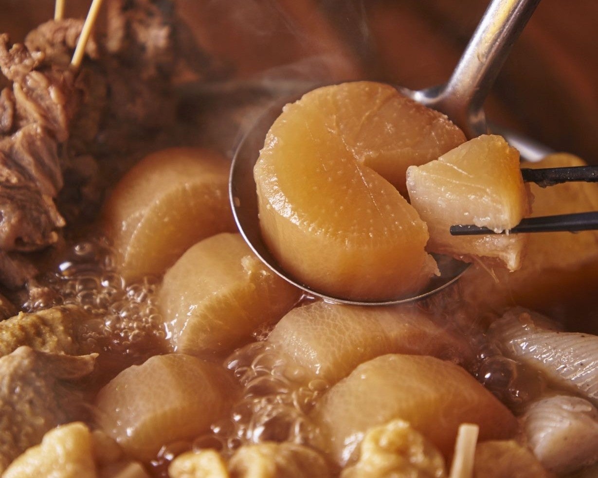 大根や玉子、厚揚げ(各220~)などをじっくり煮込み、