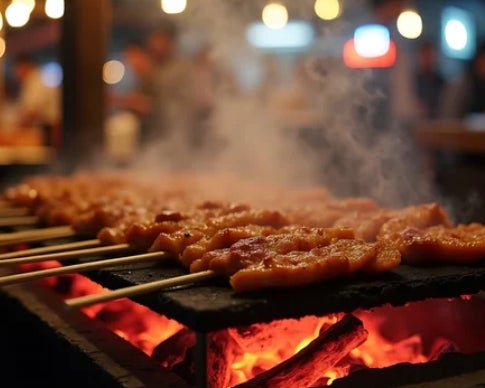 特製スパイスに漬け込み香ばしく焼き上げたアジア風串焼き。