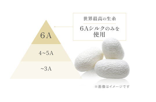絹織物に使用される生糸にはランクがあり、「6A」が最高品質となります。その「6A」シルクのみを使用。また、高級スカーフにも用いられる、職人が1枚1枚丁寧に織り上げる「綾織」という織り方を採用。伸縮性にも優れており、シワになりにくい特徴がこの織り方です。肌なじみと奥行のある上質な光沢感がより心地よい眠りへ導きます。