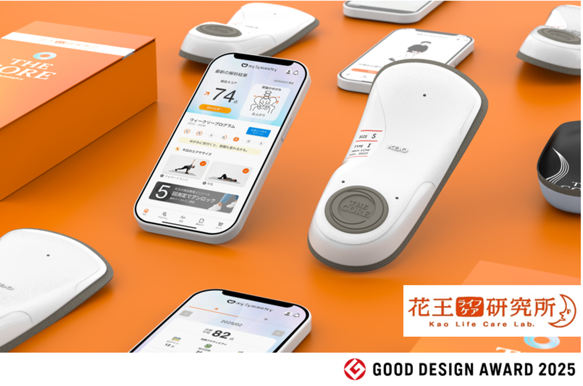 花王株式会社(社長・長谷部佳宏)は、2025年11月26日、花王の多岐にわたる本質研究を背景に、現代人の健康課題をサポートする新コンディショニング・ライフケアブランド『花王ライフケア研究所』を立ち上げます。歩行から姿勢のゆがみを解析する無料アプリ「my Symmetry(マイシンメトリー)」の配信を開始し、着用時の身体のゆがみを補整するインソール「THE CORE(ザコア)」(3品目12品種・各9,546円〈税込10,500円〉)を花王公式オンラインショップ「My Kao Mall」にて発売します。