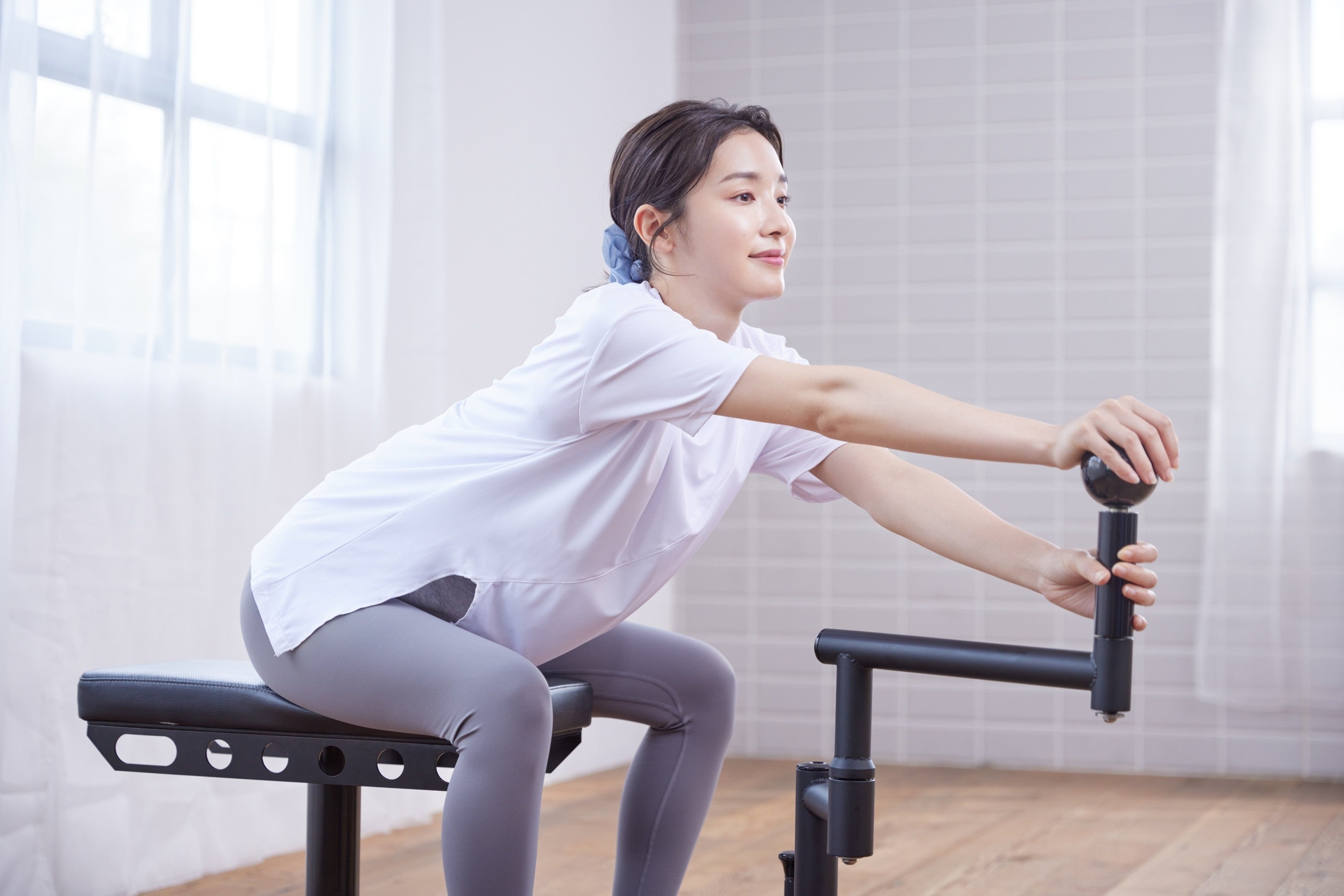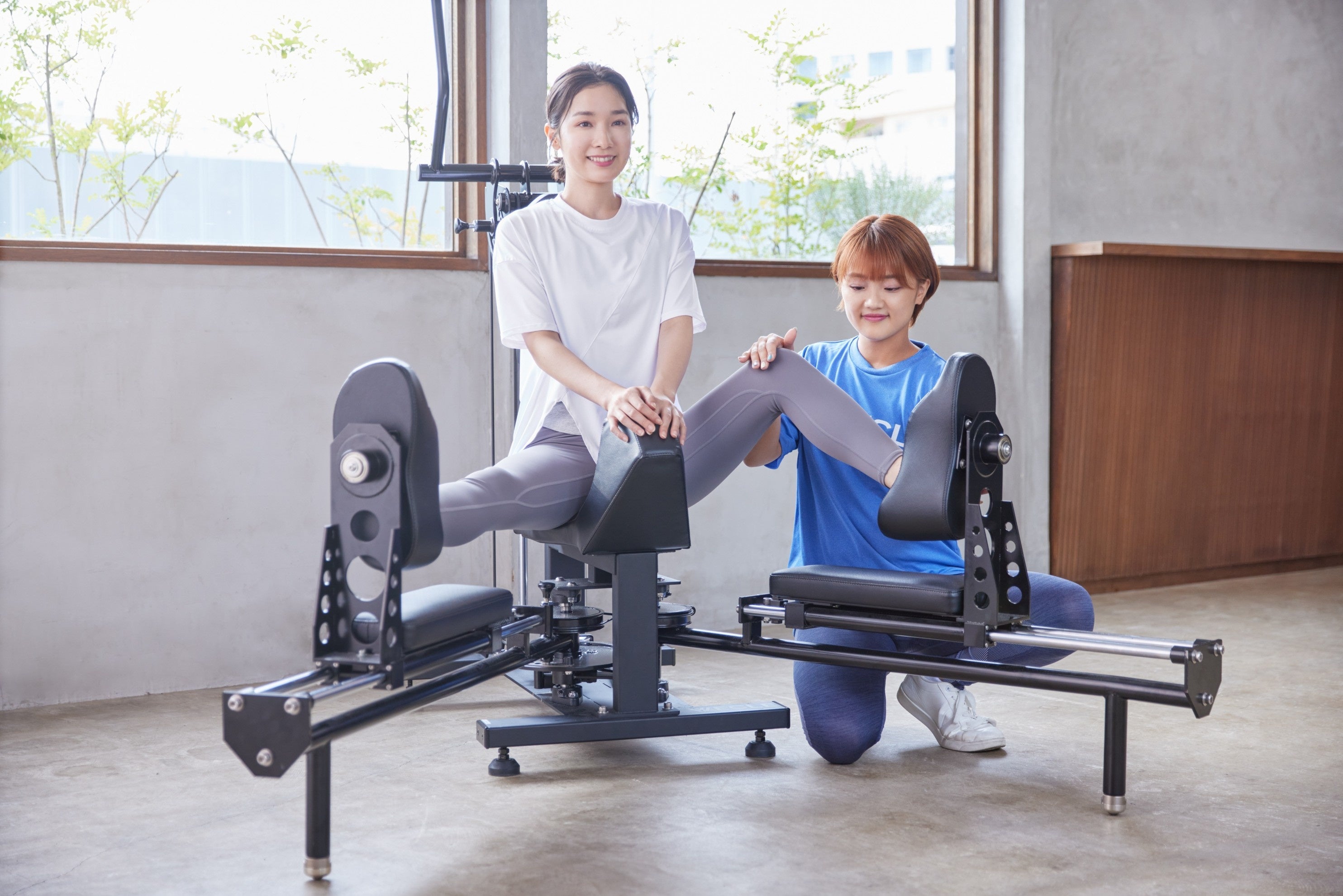 股関節を柔軟にする開脚マシン。マシンのサポートがあって初めて実感できる股関節の柔軟。腰痛や膝の痛みなどの低減にも期待。
