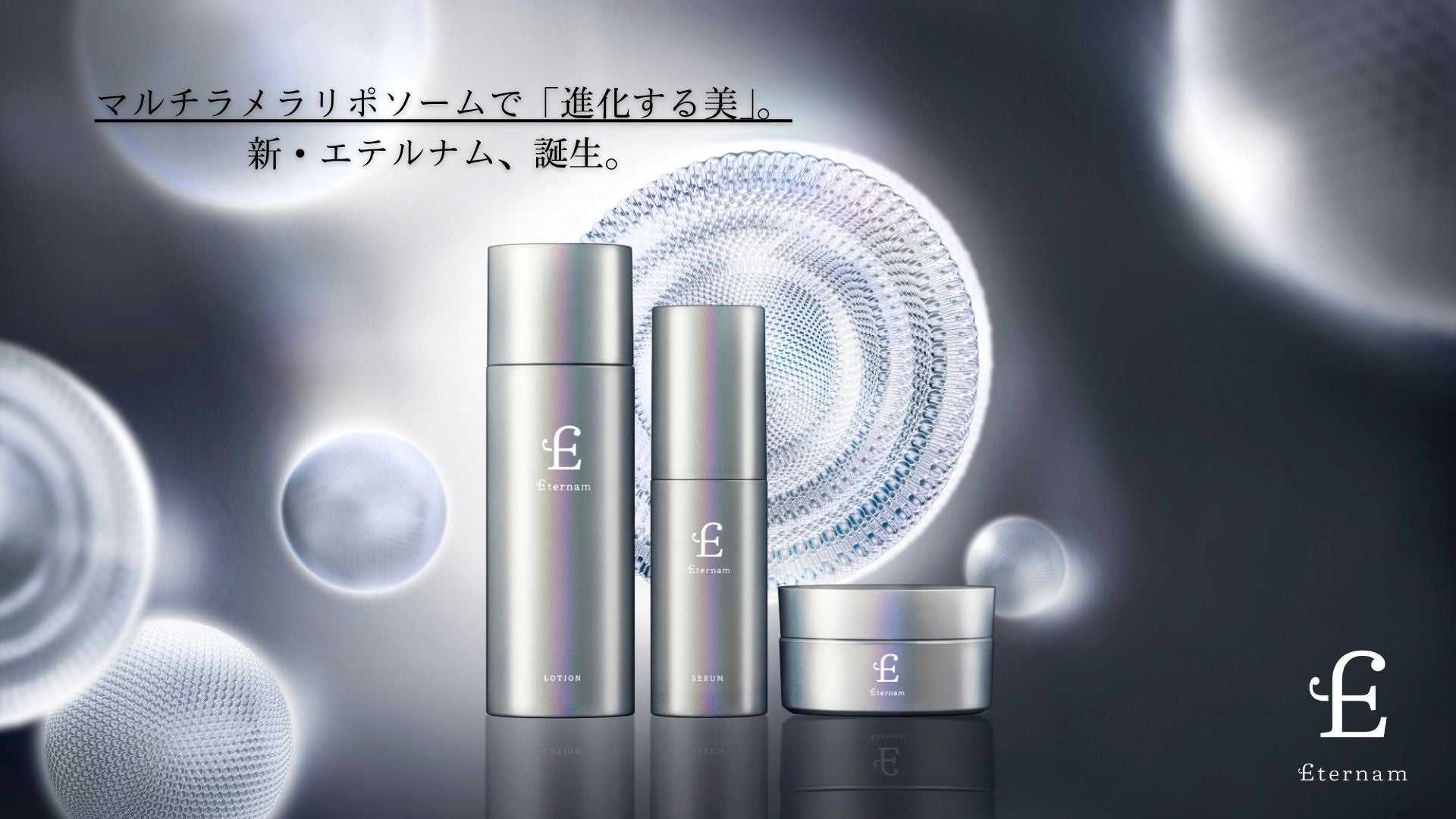 『永遠の美しさへの夢が、 夢に終わらない未来を創りあげること』を使命に掲げる、化粧品の研究開発・製造販売を行う株式会社エテルナム(本社:東京都渋谷区、代表取締役:松本隆明)は、2025年11月5日(水)再生医療研究に基づくスキンケアブランド「エテルナム」の基礎化粧品3点(ローション・セラム・クリーム)をリニューアル発売いたします。さらに10月29日(水)からは予約販売受付も開始。今回のリニューアルでは、キー成分である「ヒト臍帯由来間葉系幹細胞培養上清液」をマルチラメラリポソーム化。肌への浸透性※1と安定性を飛躍的に向上させました。さらに、4種類の新成分を追加配合し、保湿・ハリ・透明感※2をより強化する設計へと進化しています。(※1角層まで)(※2潤いによる)