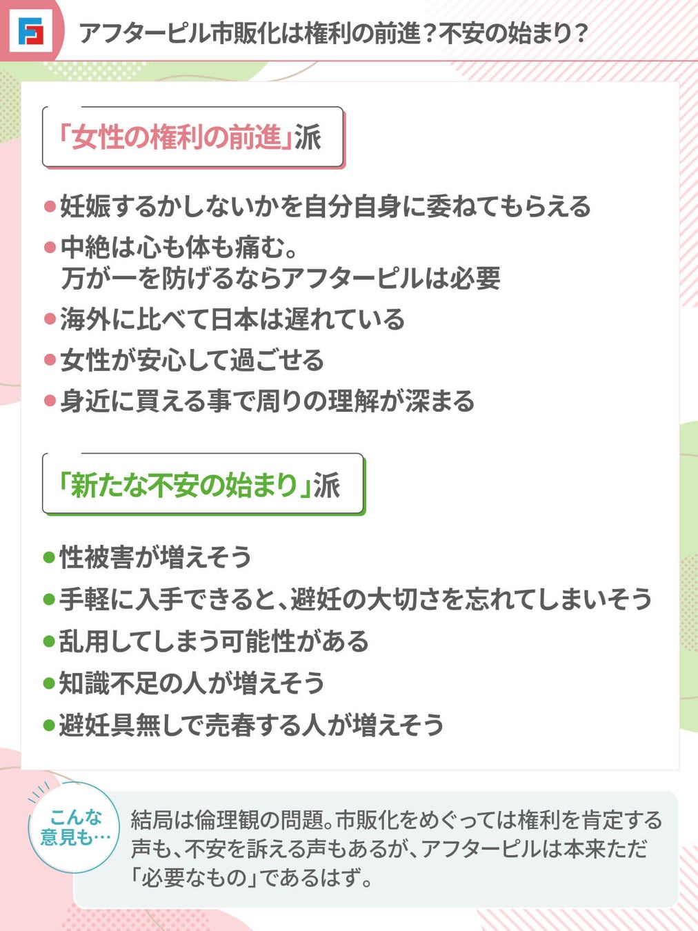 2017年にアフターピルの市販化について初めて検討されて以降、アクセス改善の必要性に対して安易な入手による無責任な使用などの懸念をめぐって議論が続いてきました。
