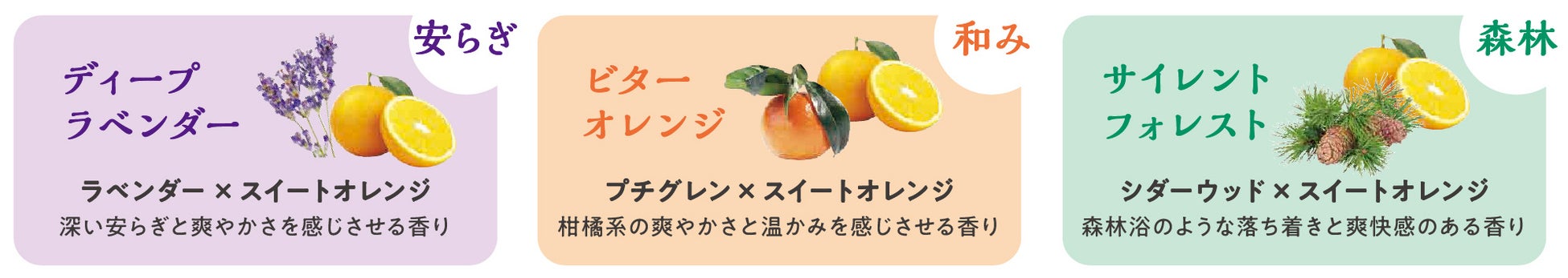 香り:スイートオレンジ×プチグレン 柑橘系の爽やかさと温かみを感じさせる香り