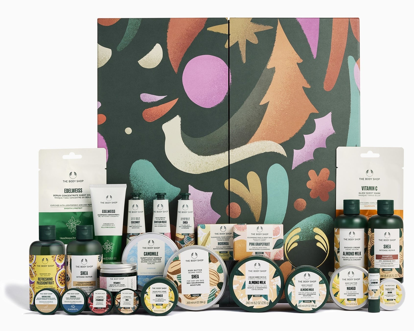 ボディケアのミニサイズをはじめ、現品サイズのシートマスクなどスペシャルケアも含むラインナップ。12/1から12/24まで、毎日箱を開けるのが楽しみなアドベントカレンダーです。