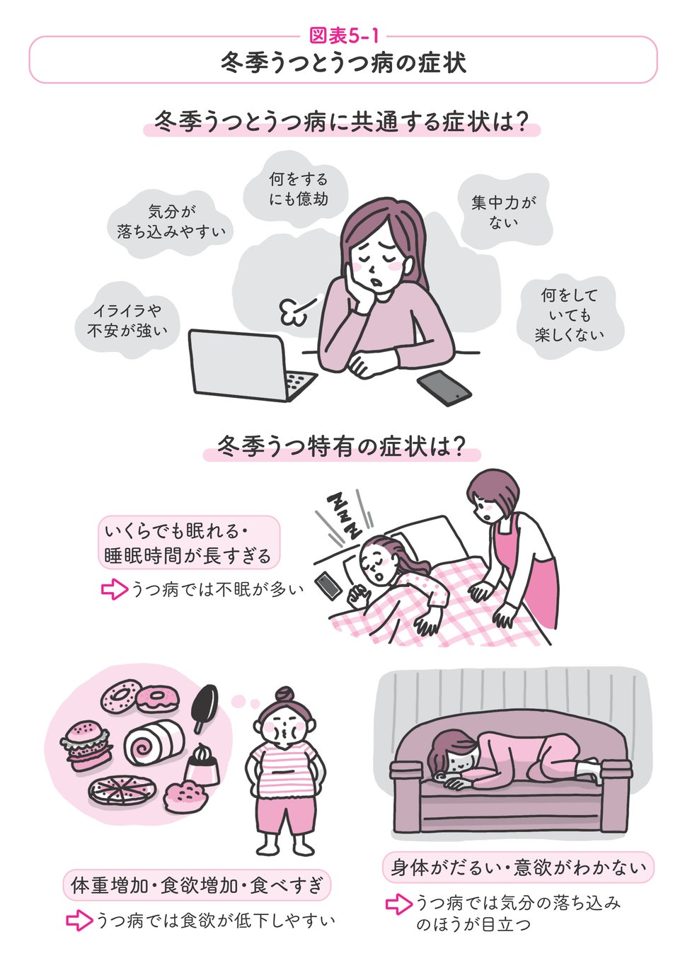 冬季うつとは寒くなってくる時期に特有のメンタル不調で、正式名称は季節性情動障害(きせつせいじょうどうしょうがい)と言います。一般的に知られている「うつ病」と似ている点もありますが、別物です。