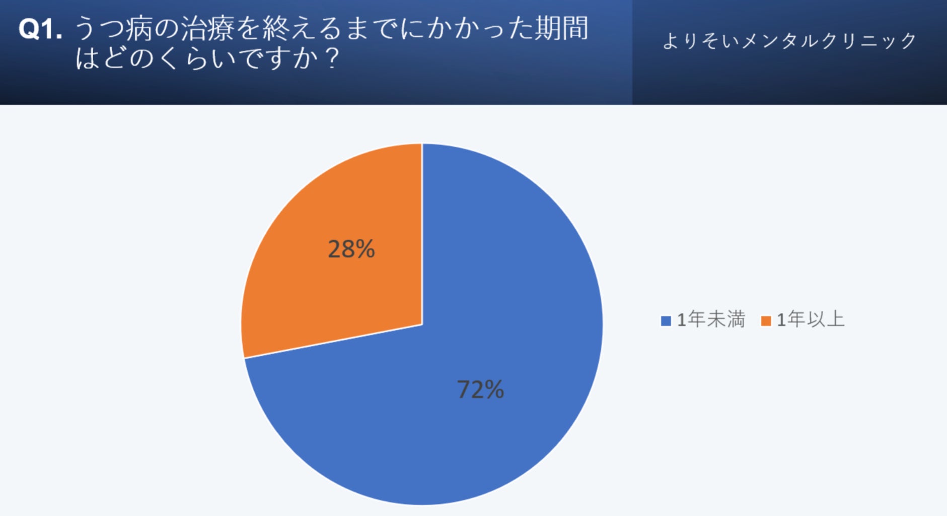 基本的にうつ病の治療は1年をかけて行われ、長いと感じる方も多くいます。しかし、再発防止のためには必要な期間です。