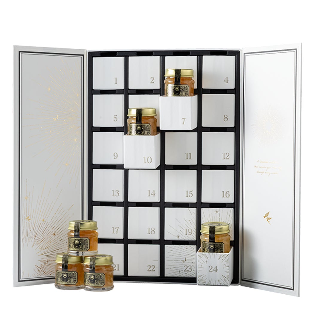 聖夜までの24日間、黄金の小瓶「BI-SU16」 を毎日ひとつずつ開ける楽しみを。希少なご褒美が、ホリデー当日の、自信に満ちた特別な輝きを育みます。