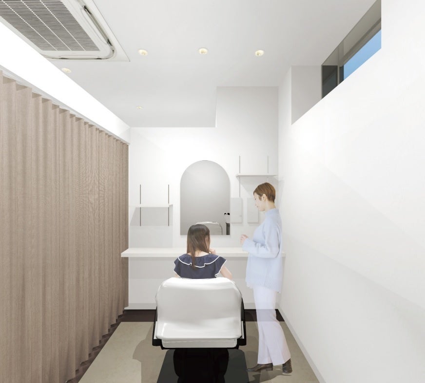 店内はベージュを基調とした落ち着いた雰囲気で、プライバシーに配慮した3つの仕切られたシャンプー台スペースとインタビュールームを設け、お客様が安心してご相談・施術を受けられる環境を整えております。