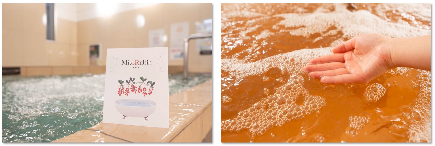 「マイトルビンの湯」は、当社が開発・販売するマイトルビン入浴剤を使用し、身体を温めながら細胞レベルの健康を意識する“科学的温浴体験”を提供する企画です。