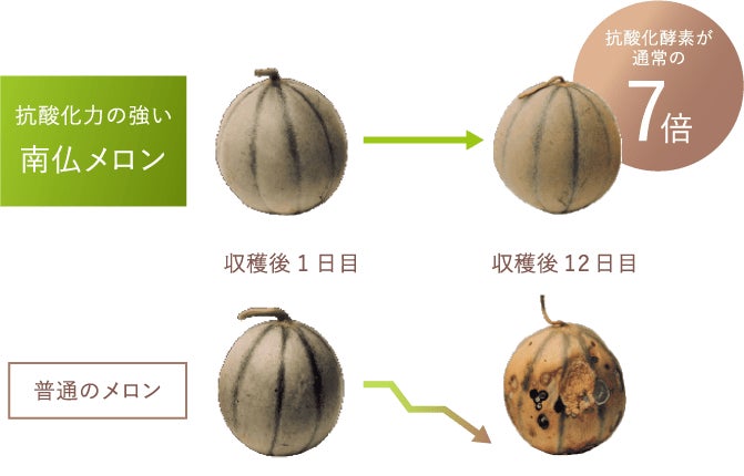 このメロンは収穫後も長期間鮮度を保つ特性があり、通常のメロンの7倍以上の抗酸化酵素を含むことが知られています。さらに、そのメロン抽出物をグリソディンに進化させる技術が注目されています。