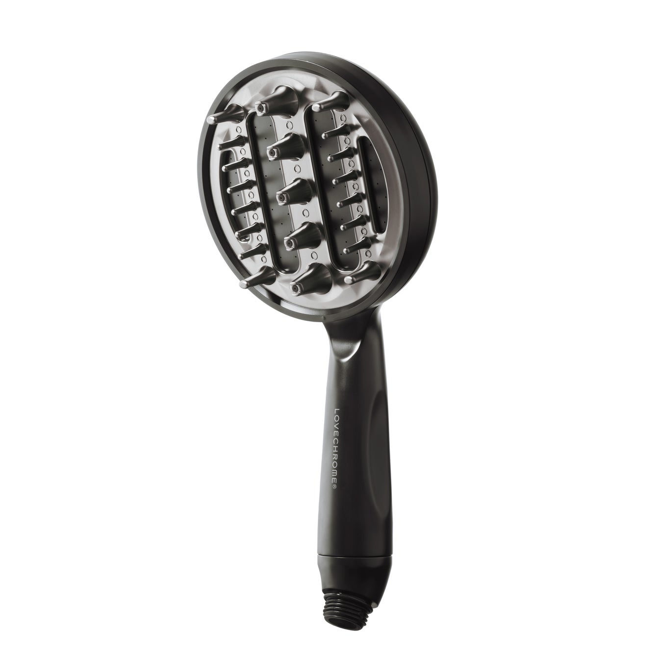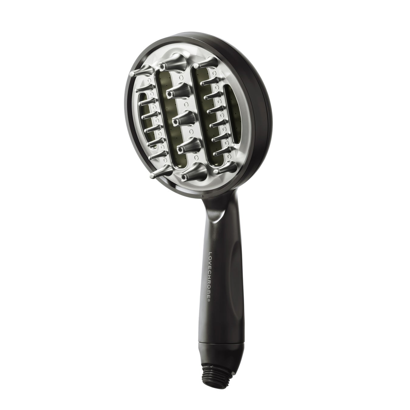 ラブクロム 美頭髪シャワーヘッドは、ラブクロム独自のなめらかな表面加工を施したヘアコームをシャワーヘッドに融合。頭皮のかたちに沿うノズル形状で、毛穴よりも小さなバブルをコーム型ノズルから頭皮に直接届け、毛穴に潜む汚れをしっかりと洗浄します。