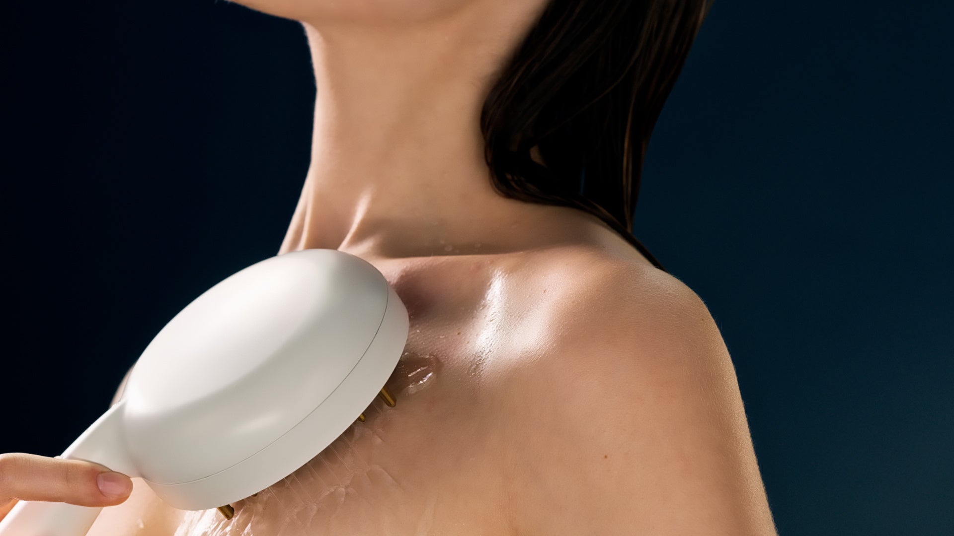 温水を流しながら、頭皮にやさしく当てセルフマッサージ。心地よい刺激がめぐりをサポートします。