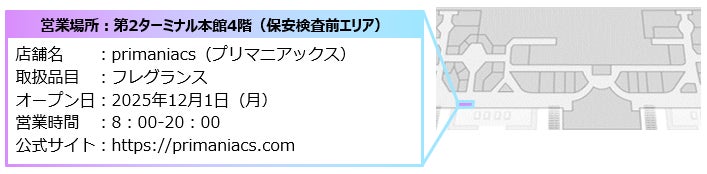2025年12月1日、第2ターミナル本館4階 AIRPORT MALL内にアニメやコミック、ゲームなどのキャラクターをイメージしたフレグランスを販売する「primaniacs(プリマニアックス)」が新たにオープン!!!