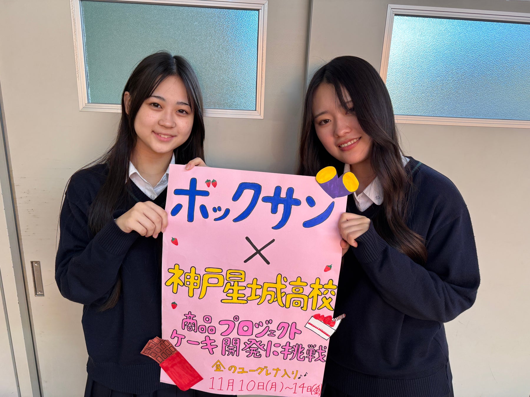 今回、神戸星城高校の有志の生徒たちが実際にケーキを考案し、ボックサンの福原代表と試作・試食を重ねて3種類のケーキが完成しました。神戸を代表する老舗洋菓子店ボックサンの洋菓子づくりのノウハウと、神戸星城高校の生徒たちの自由な発想を融合し、金のユーグレナを使用した「健康」と「おいしさ」を両立したスイーツの開発に挑戦しました。ケーキには神戸星城高校で生徒たちが丹精込めて育てたサツマイモとカボチャに、KOBELCOグループの健康素材「金のユーグレナ」をブレンドしたクリームを使用しています。(ケーキ1個当たりにつき金のユーグレナ500mg配合)。本商品はボックサンの板宿南店限定で11月10日(月)から約1週間販売されます。販売期間中は開発に携わった神戸星城高校の生徒も、放課後実際に店舗で接客を行いケーキの魅力を伝えます。
