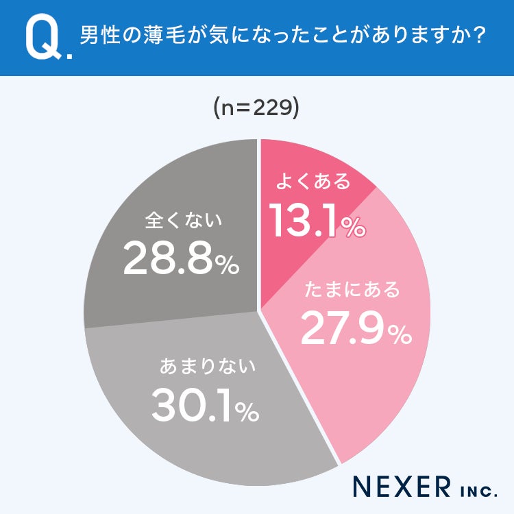 20代~60代の女性のうち約4割が「男性の薄毛が気になったことがある」と回答しました。