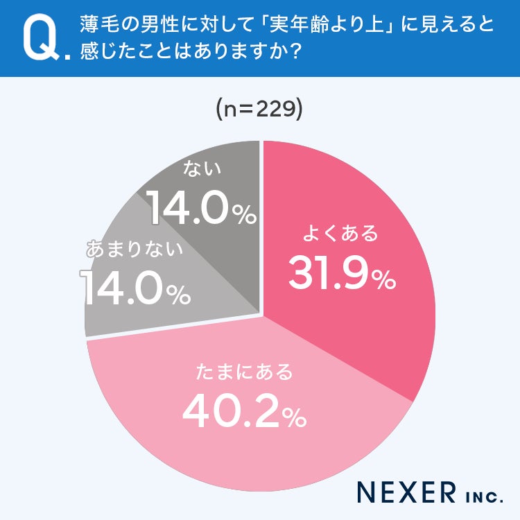 次に、薄毛の男性に対して「実年齢より上」に見えると感じたことがあるかを聞いてみました。
