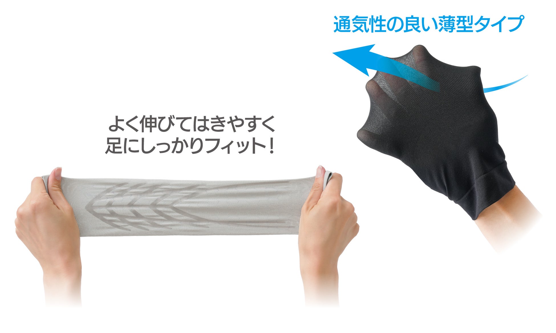 ・伸縮性に優れた薄型タイプで履きやすくムレにくい!