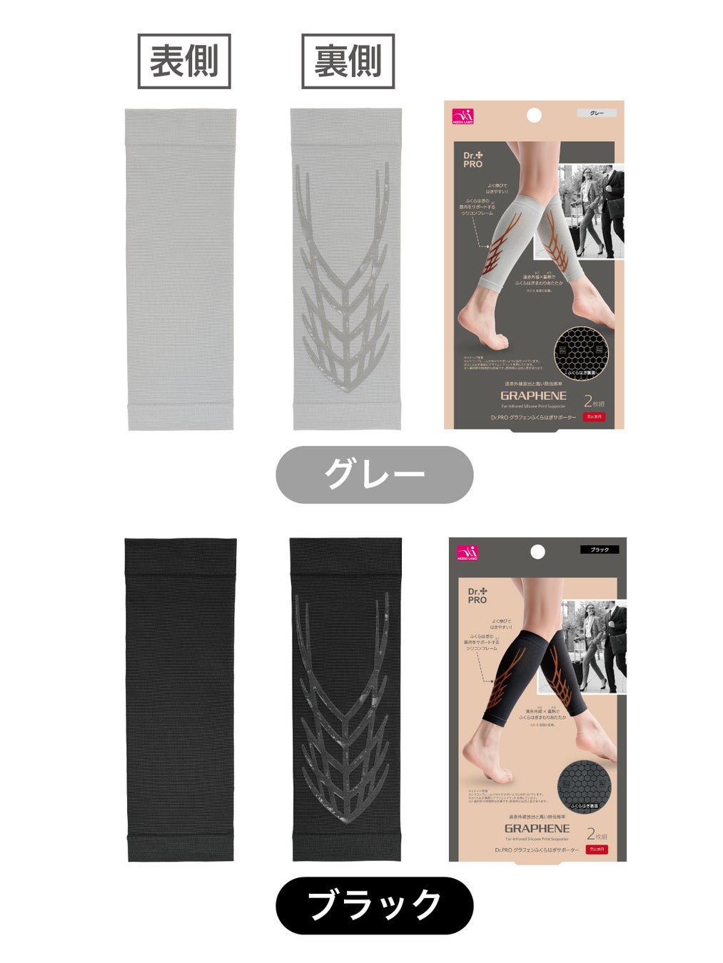 株式会社ニーズ/株式会社サンファミリー(本社:兵庫県加古川市、代表取締役:本岡勝則)は、「Dr.PRO グラフェンふくらはぎサポーター(2枚入り)」3,278円(税込)を11⽉10⽇(月)より発売開始しました。