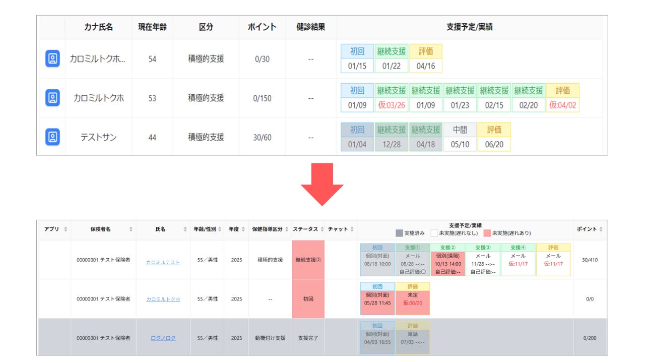 2025年8月に実施したアンケート調査にて、アンケートに回答した「カロミル保健指導」の導入機関の8割以上が業務効率の改善効果を挙げていただいていますが、今回の新機能リリースにて、煩雑な業務の一つでもあった面談予約や進捗管理の工数削減を実現し、特定保健指導業務の一層の業務効率化に貢献していきます。