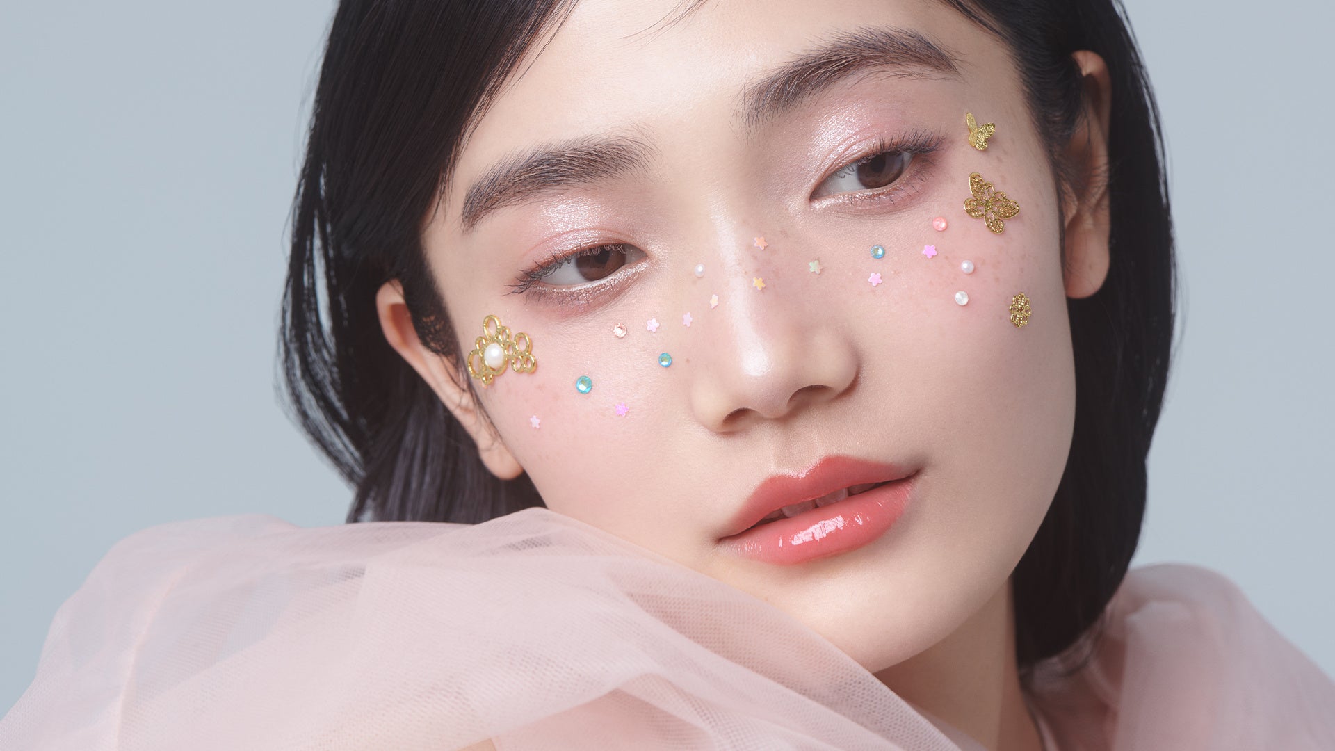 この「Second Skin」技術の特長である肌と一体化させる人工皮ふの技術を応用して、「スキンアクセサリー™」が誕生しました。アクセサリーパーツは肌と一体化して固定され、従来のメイクによる表現を進化させた、デコラティブで多様な表現が可能です。伸縮性・密着性により、剥がれにくさと剥がしやすさを両立するとともに、通気性により肌へのやさしさや心地よさも同時に実現しました。