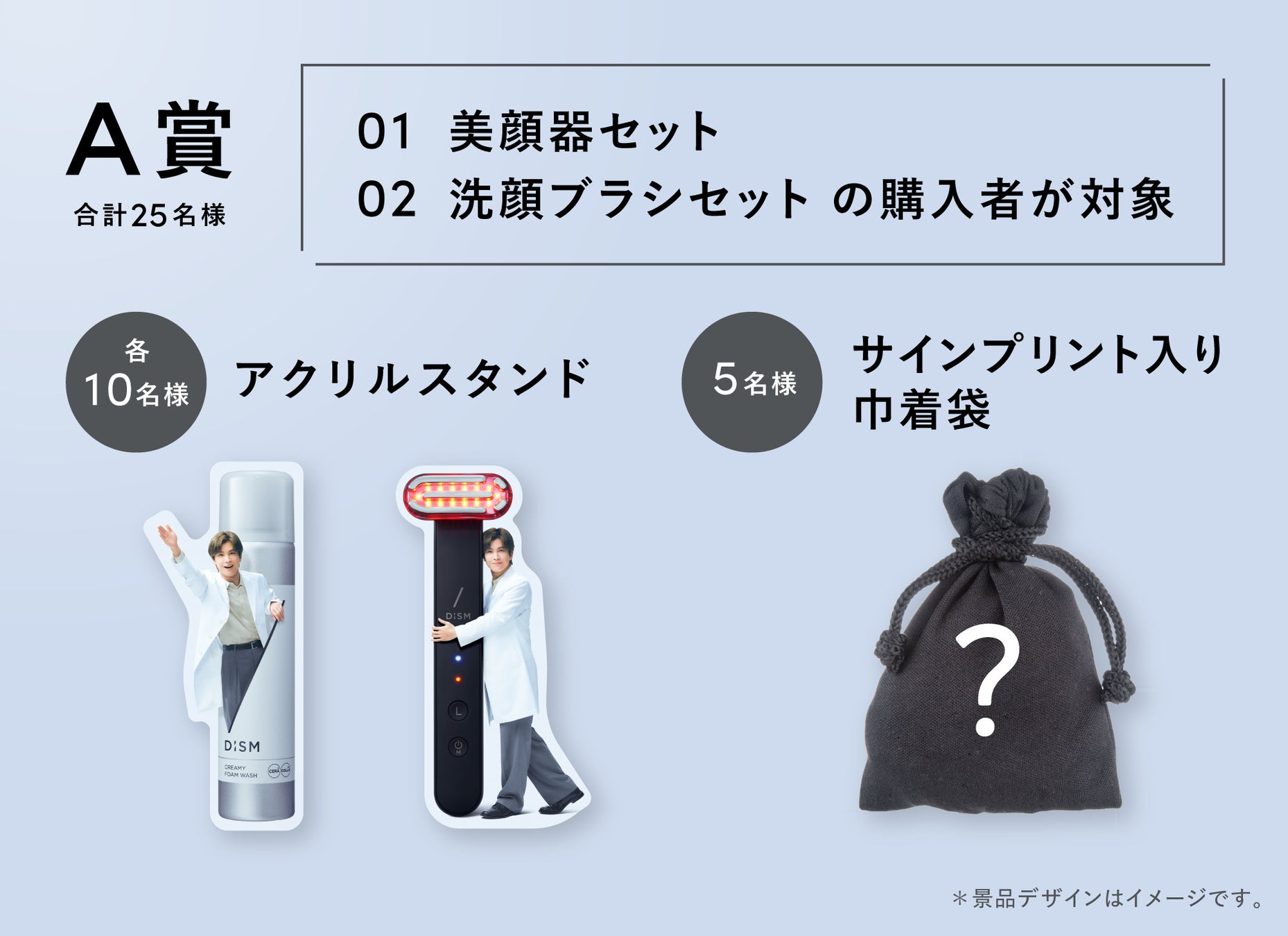 A賞 計25名:①美顔器セット/②洗顔ブラシセットの購入者様がご対象
