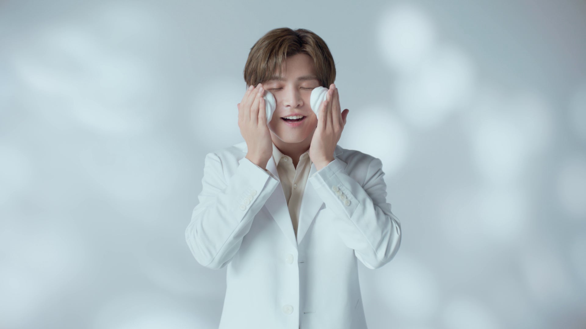 撮影の合間には、モチモチの洗顔料や美顔器を気に入った様子で触れていたり、こっそりキレキレのダンスを踊られていたりと、岩田さんご自身のチャーミングな姿も見られました。長丁場の撮影でしたが岩田さんは一切疲れを見せることなく、さすがのプロ意識の高さに現場からは感嘆の声が上がりました。