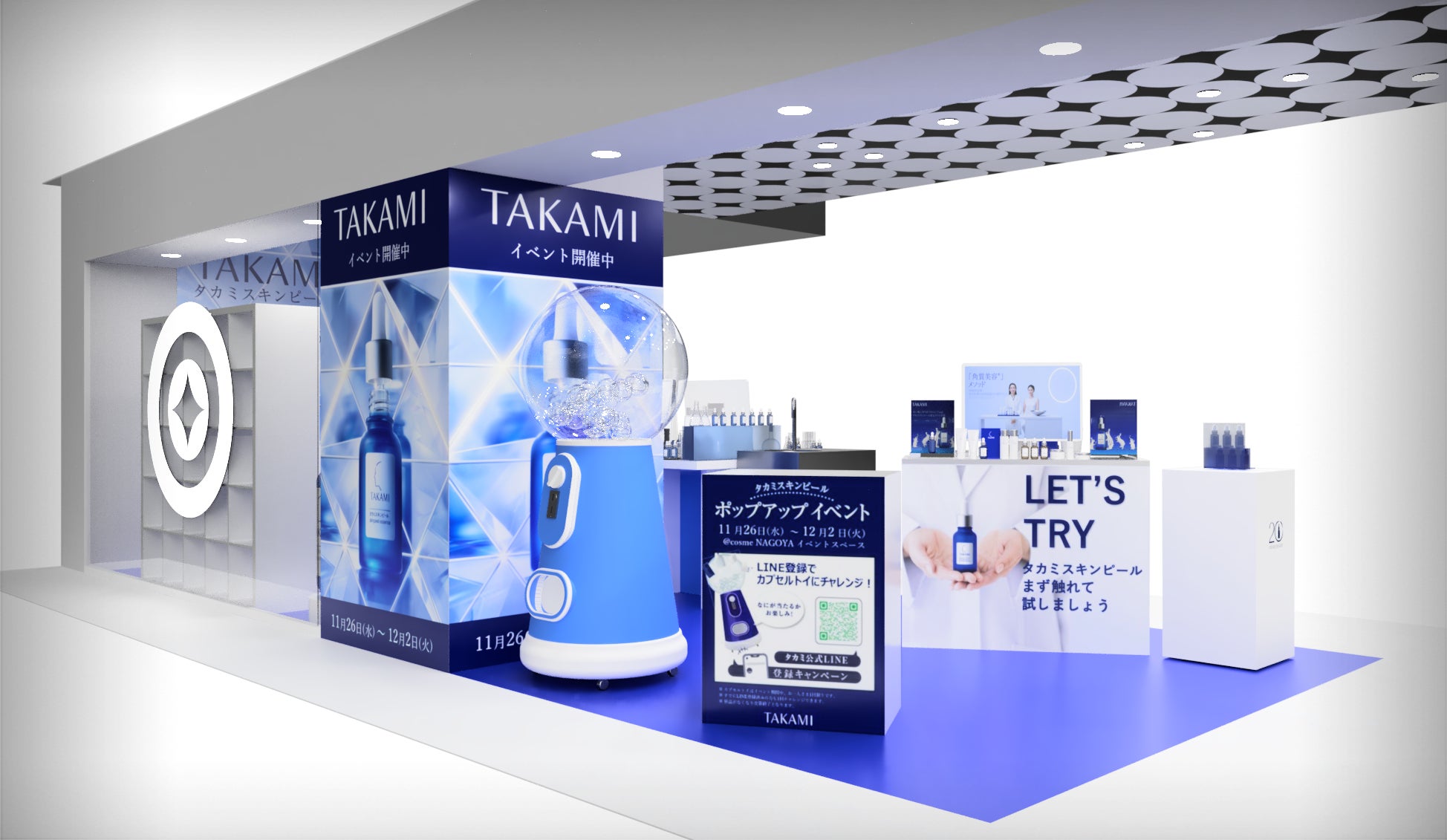 東京・表参道にある美容皮膚の現場で、20万人*¹以上の肌と向き合ってきた経験から誕生したスキンケアブランド「タカミ」(本社:東京都新宿区、 www.takami-labo.com) は、11月26日(水)~12月2日(火)に@cosme NAGOYAにてポップアップイベントを開催いたします。
