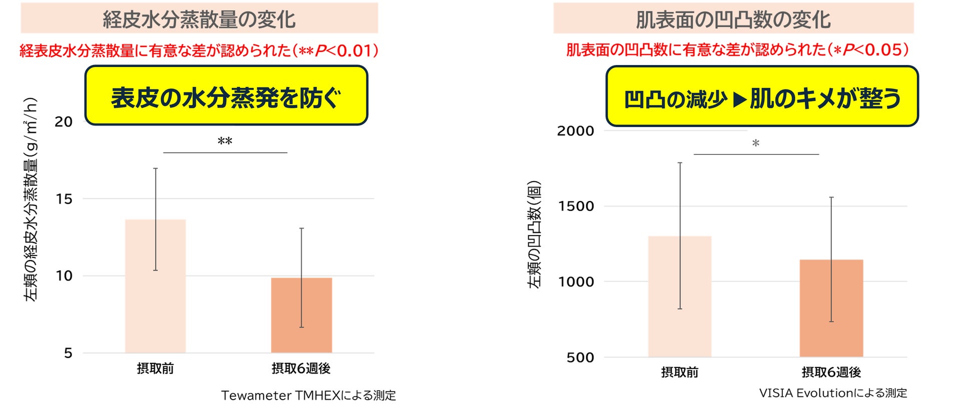 ②肌表面の凹凸数についても減少が確認され、肌のキメが整ったことが判明 。